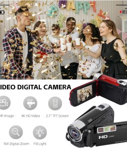 1080P HD Camcorder, 16MP DV Camera with 16x Digital Zoom, 2.7in TFT Rotatable Screen, Built-in Speakers, USB (Black)